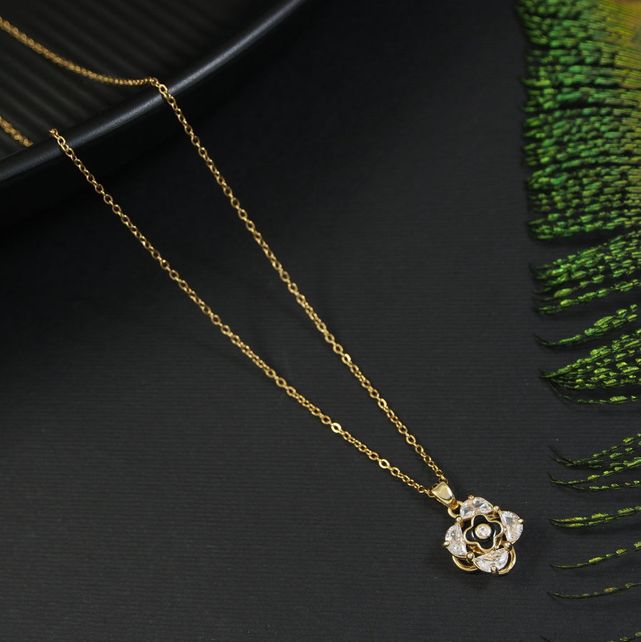 Stainless Steel Gold/Rosegold Plated Clover Spinning Pendent Necklace