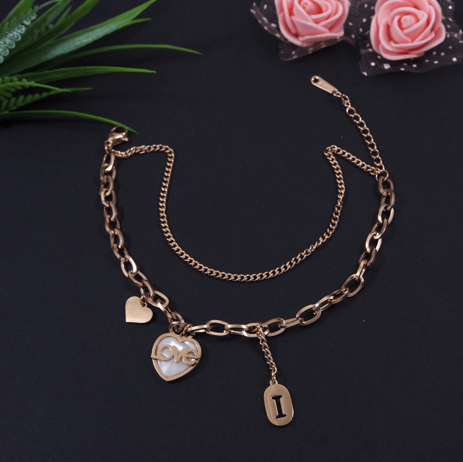 Stainless Steel Rosegold Plated LOVE Heart Shaped Charm Bracelet