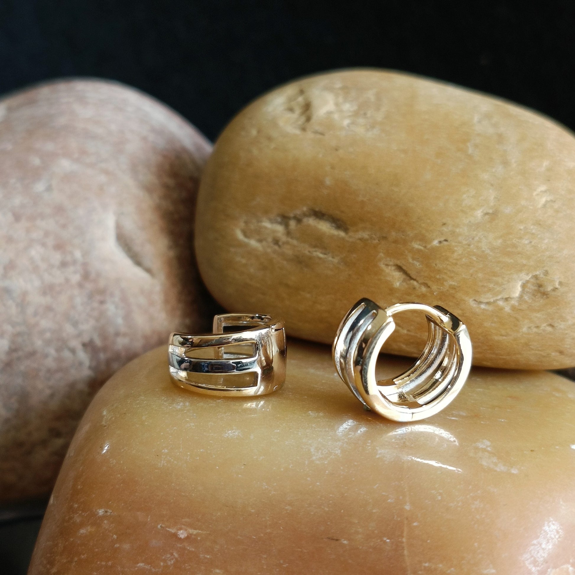Two Tone Openwork Simple Designed Small Hoops Earring