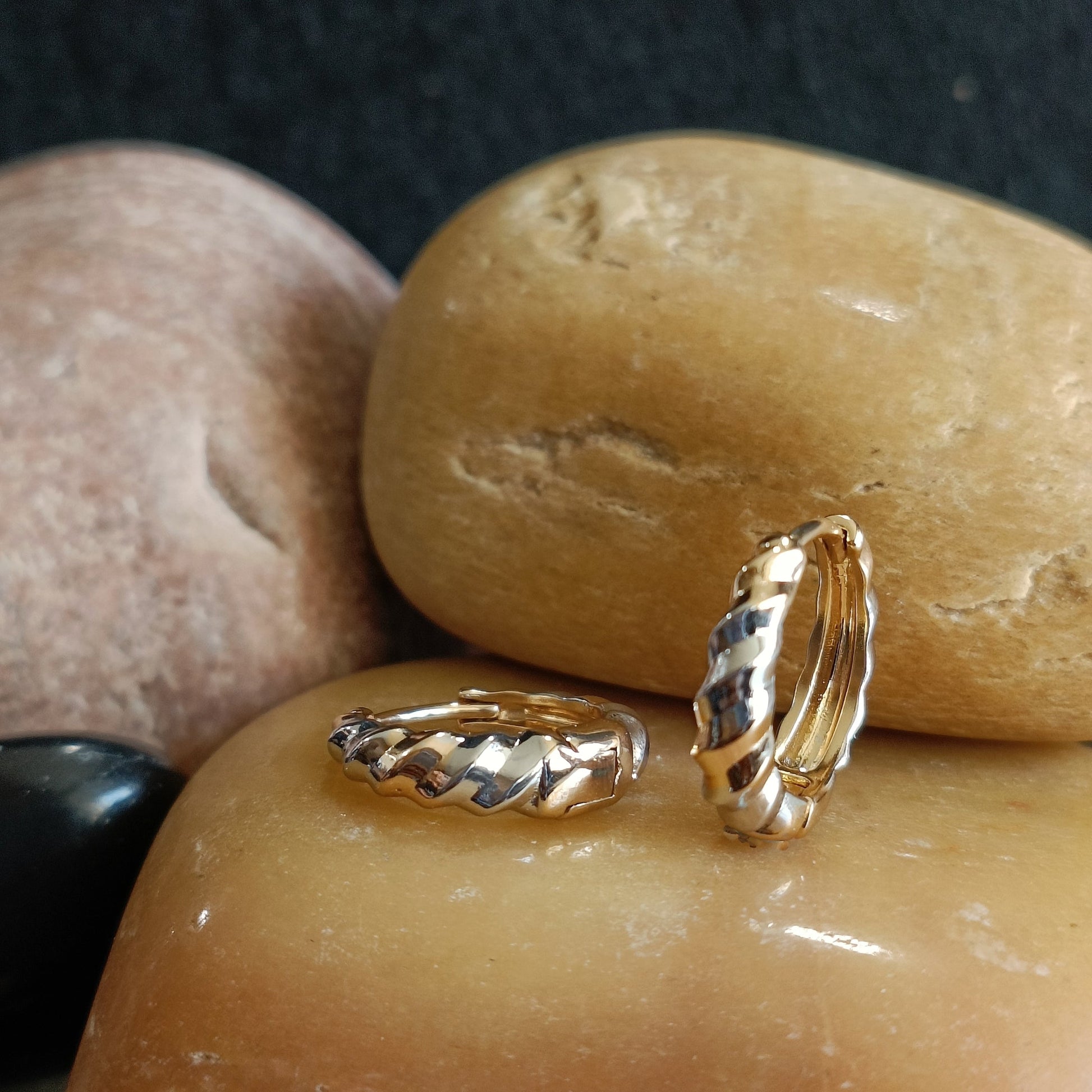 Collection:- Two Tone Twist Designed Round Shaped Hoops Earring